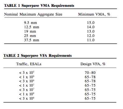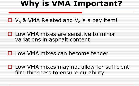 VMA ορίζεται το άθροισμα του όγκου των κενών του αέρα και του όγκου της ασφάλτου που δεν έχει απορροφηθεί από τα αδρανή.