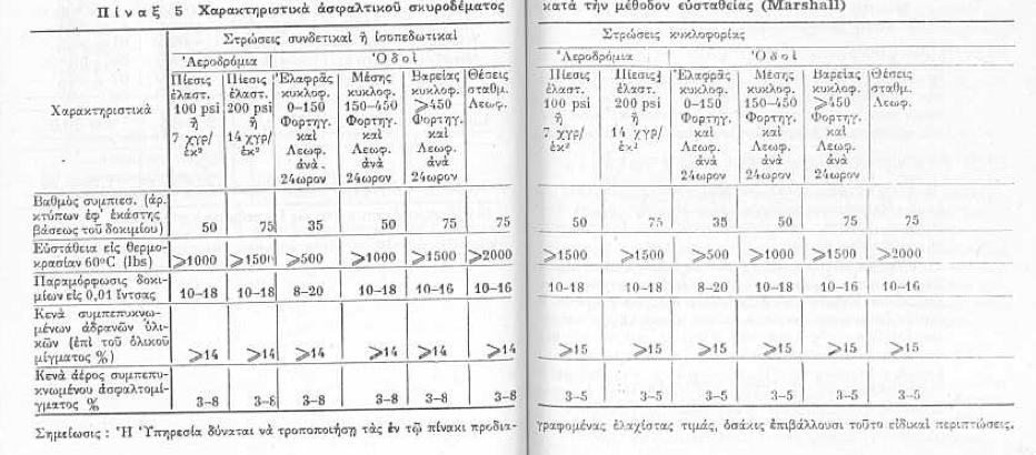 Ως παράδειγμα αναφέρεται ασφαλτικό σκυρόδεμα Α 265/Α κυκλοφορίας (25 mm) με παιπάλη 6,6%, ποσοστό ασφάλτου 5,4/5,7%, Rice 2,524 gr/m3, κενά 3,85%, VMA 14,1 % και VFA 72,8%.